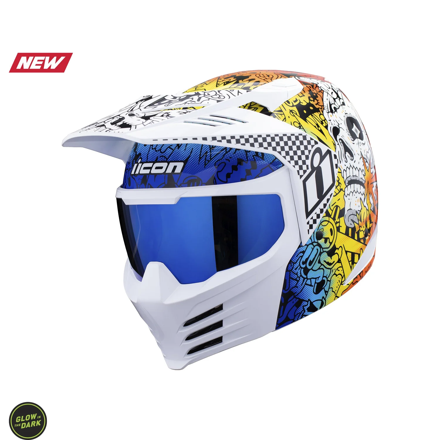 Why settle for a glow-in-the-dark skull when you can have a glow-in-the-dark skull that’s shaped like a lightning bolt? Motocross styling meets a skull-littered design in the Elsinore Doodle 3 Helmet. You get a lightweight but strong FRP shell and a zero-distortion Fog Free MXShield™ integrated into the face mask, which lifts easily for grabbing a quick drink or a chat with a fan. Inside, the moisture-wicking Hydradry™ and AxSuede liner keep you cool and comfortable.