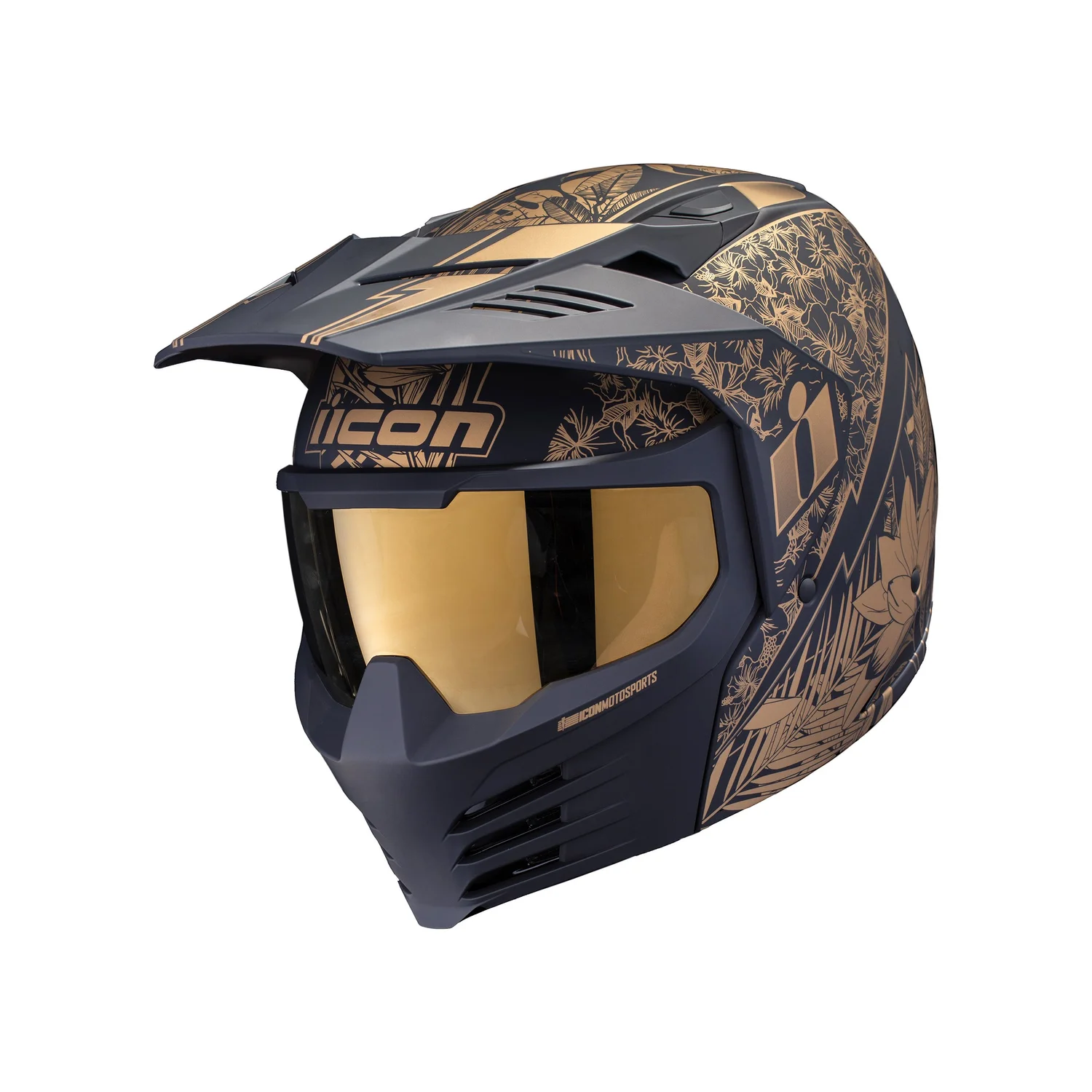 Show off your tropical flavor with the modular Elsinore Kaonohi Helmet. The lightweight, handcrafted fiberglass shell is adorned with equatorial flora. The Fog-Free RST MXShield™ integrates perfectly with the face mask for a fierce style that provides a great view of the road ahead. Inside the helmet, a premium comfort liner gives you a cool head even on the hottest days.