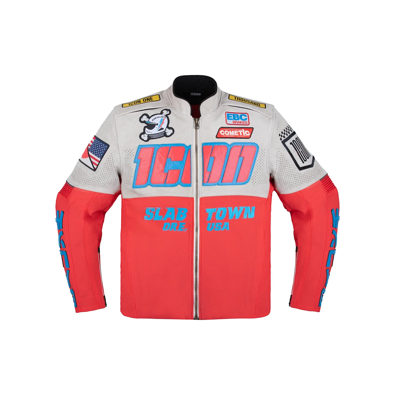 Don’t forget to thank your sponsors when you win the race! You’ll really be a winner in the Slabtown Intercept 84 Jacket, which blends high-tech armor with old-school moto-style. Only 100 lucky people get to take home this limited-edition jacket. The durable 1.2-1.4mm leather is covered with custom ICON graphics, and stretch textile panels add just the right flex. D3O® LP1 impact protectors in the elbows and shoulders are ready to take on the competition.